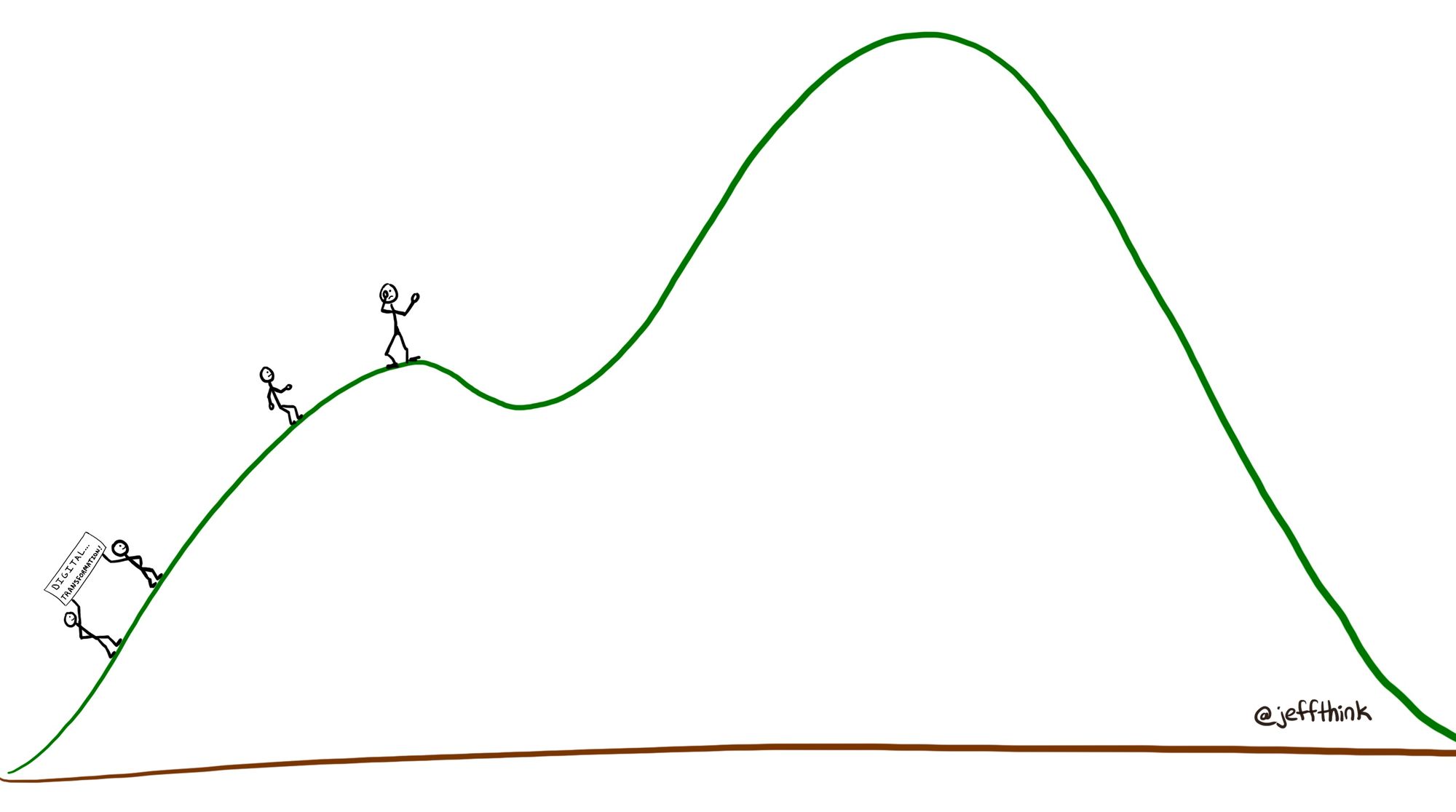 I sometimes see this phenomenon in my consulting work. An organization will take their first steps up some proverbial mountain, waving a “we’re becoming agile” banner and blissfully unaware of what the summit looks like. As a result, many reach a ridge — some local maxima of performance — and settle in there, instead of continuing to climb towards the top. Sure, things are better than before, but they’re less than what they could be, and the organization may have expended its energy and good will prematurely.